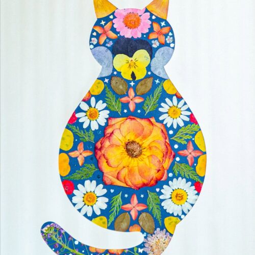 Cozy Cat: Starry Bloom 5″×7″