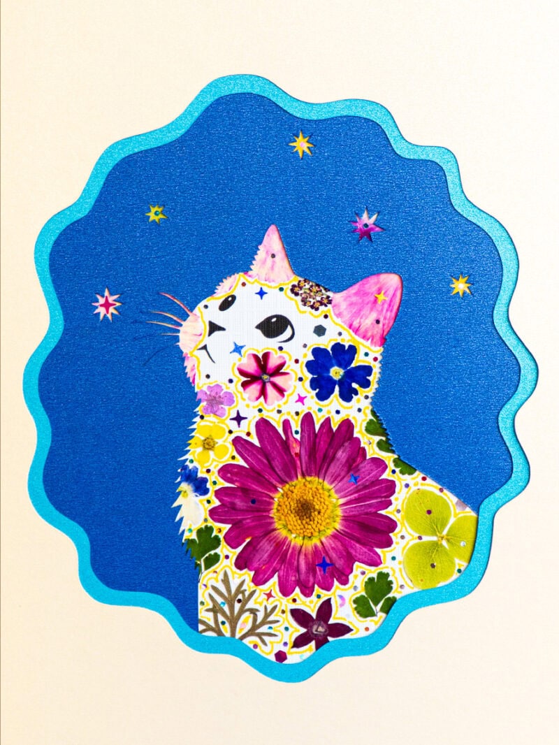 Looking Up Cat: Cosmic Petal 5″×7″