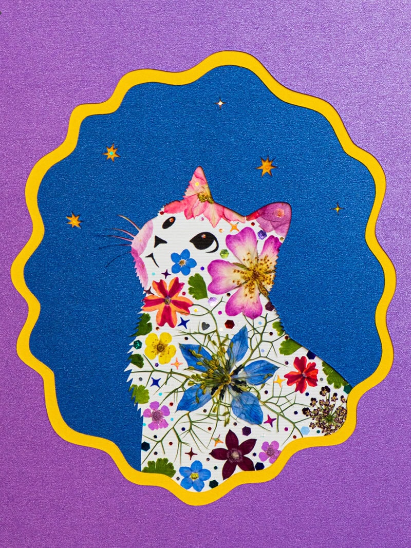 Looking Up Cat: Midnight Bloom 5″×7″