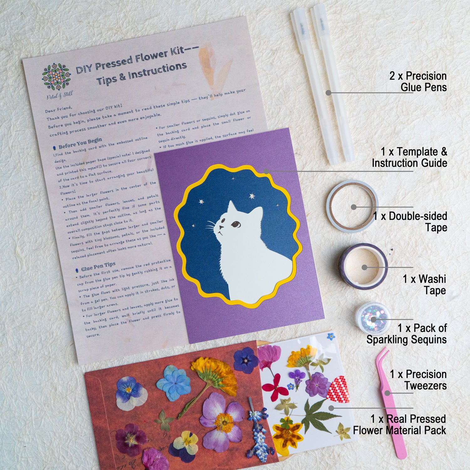 ✔ Return Policy: Due to the delicate nature of handmade pressed flowers, all sales are final to ensure material quality. We cannot accept returns for change of mind.