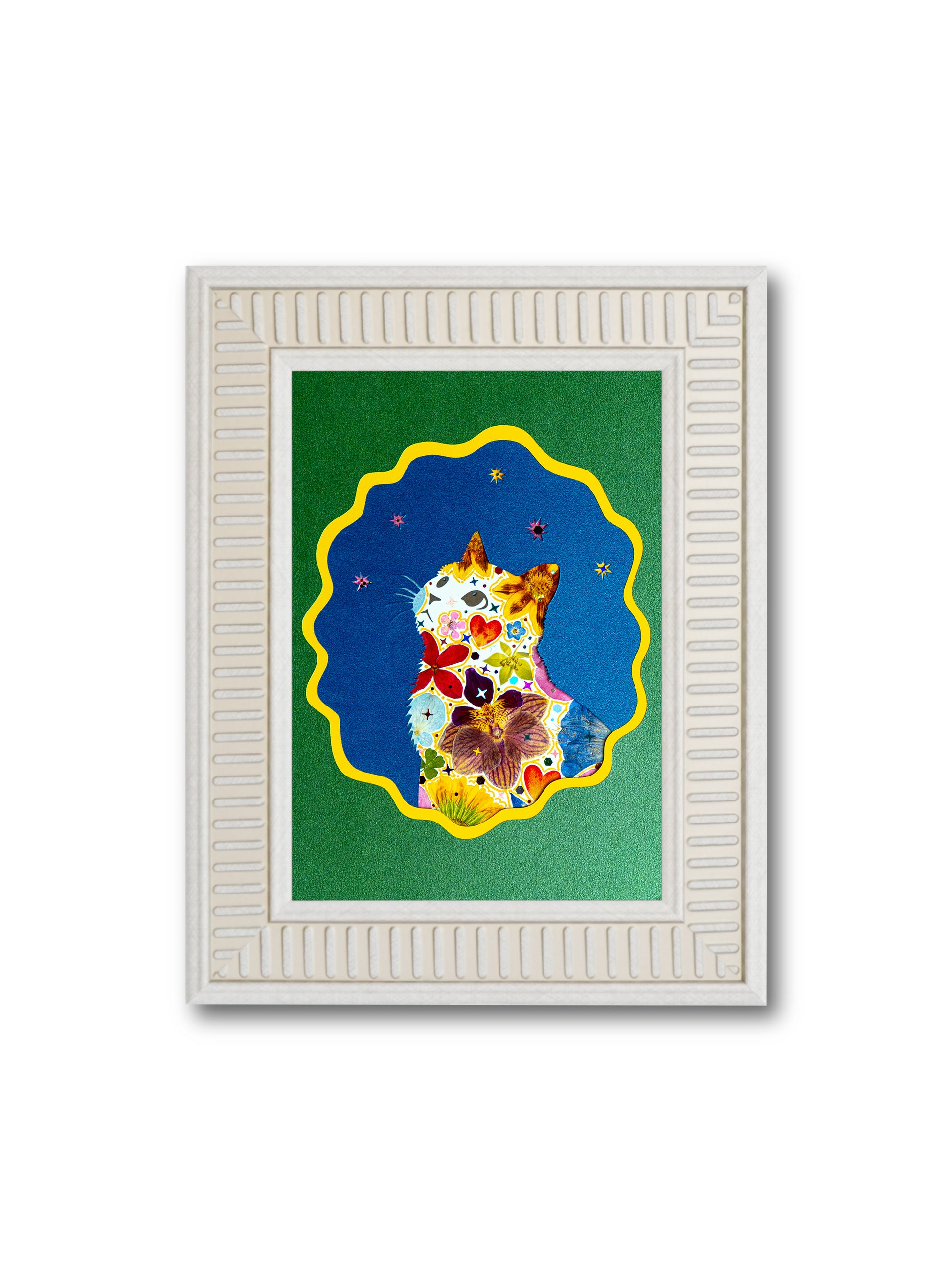 We use premium, hand-pressed flowers curated to retain their vibrant colors for years. As with all natural art, a gentle, graceful fading over time is part of the organic process—think of it as the artwork’s own story. To keep your piece beautiful, simply avoid direct sunlight and high humidity.