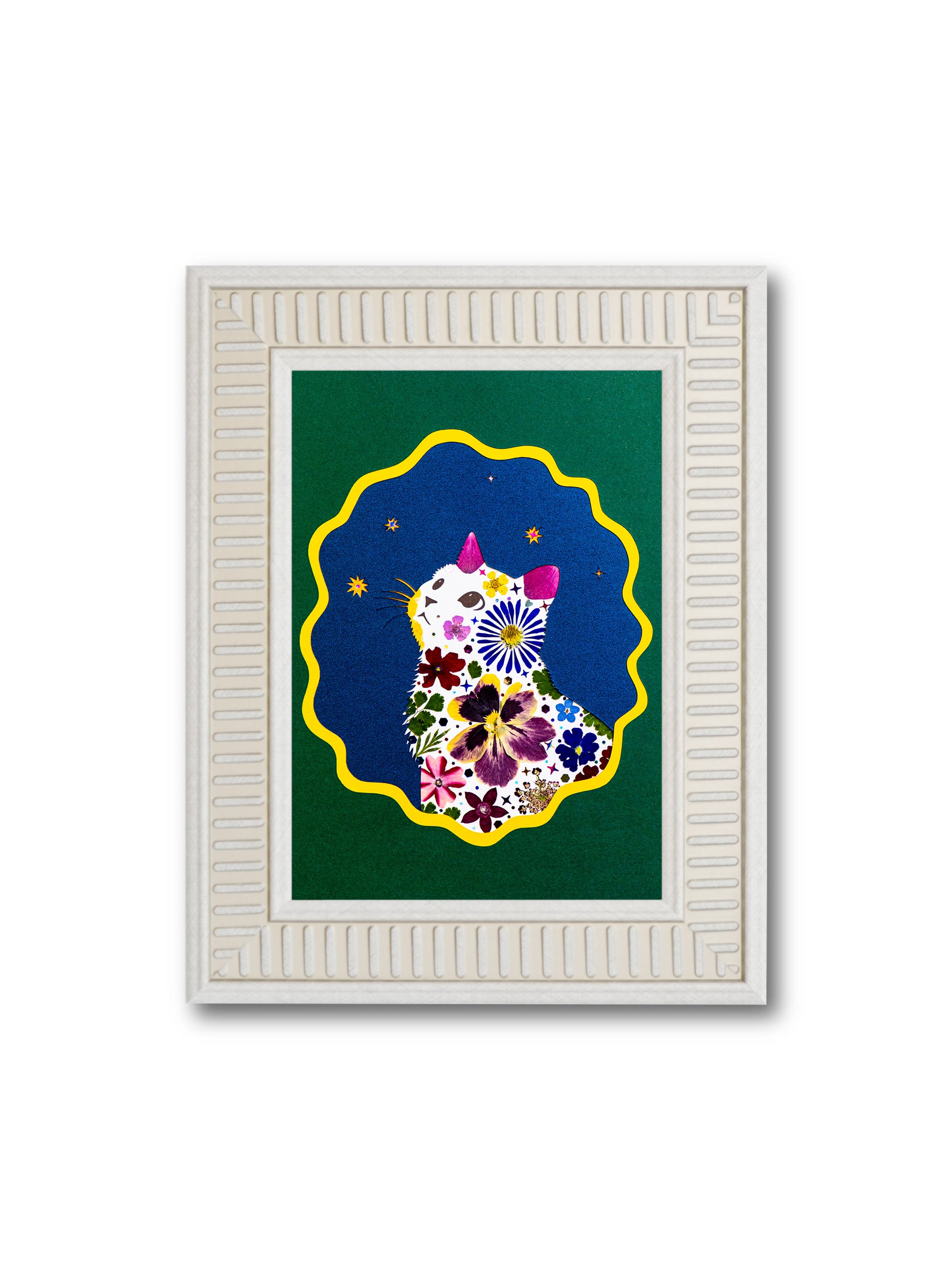 We use premium, hand-pressed flowers curated to retain their vibrant colors for years. As with all natural art, a gentle, graceful fading over time is part of the organic process—think of it as the artwork’s own story. To keep your piece beautiful, simply avoid direct sunlight and high humidity.