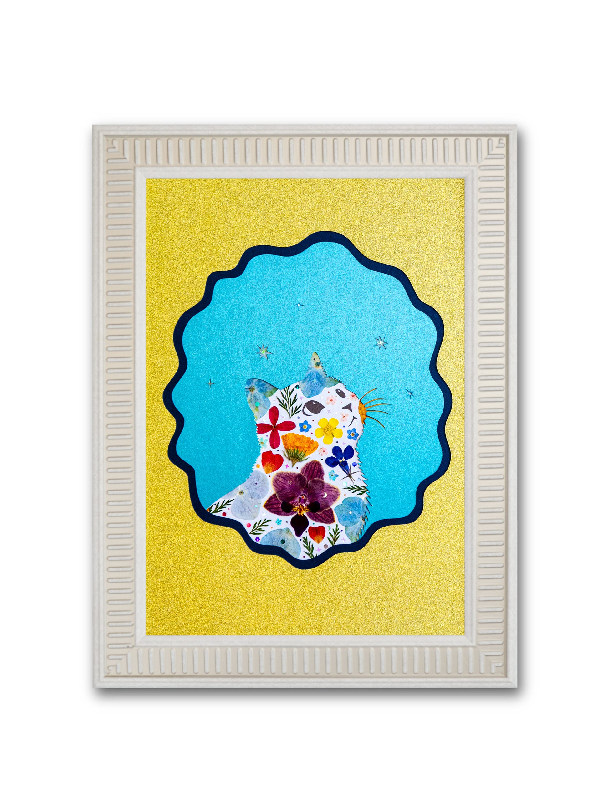 We use premium, hand-pressed flowers curated to retain their vibrant colors for years. As with all natural art, a gentle, graceful fading over time is part of the organic process—think of it as the artwork’s own story. To keep your piece beautiful, simply avoid direct sunlight and high humidity.