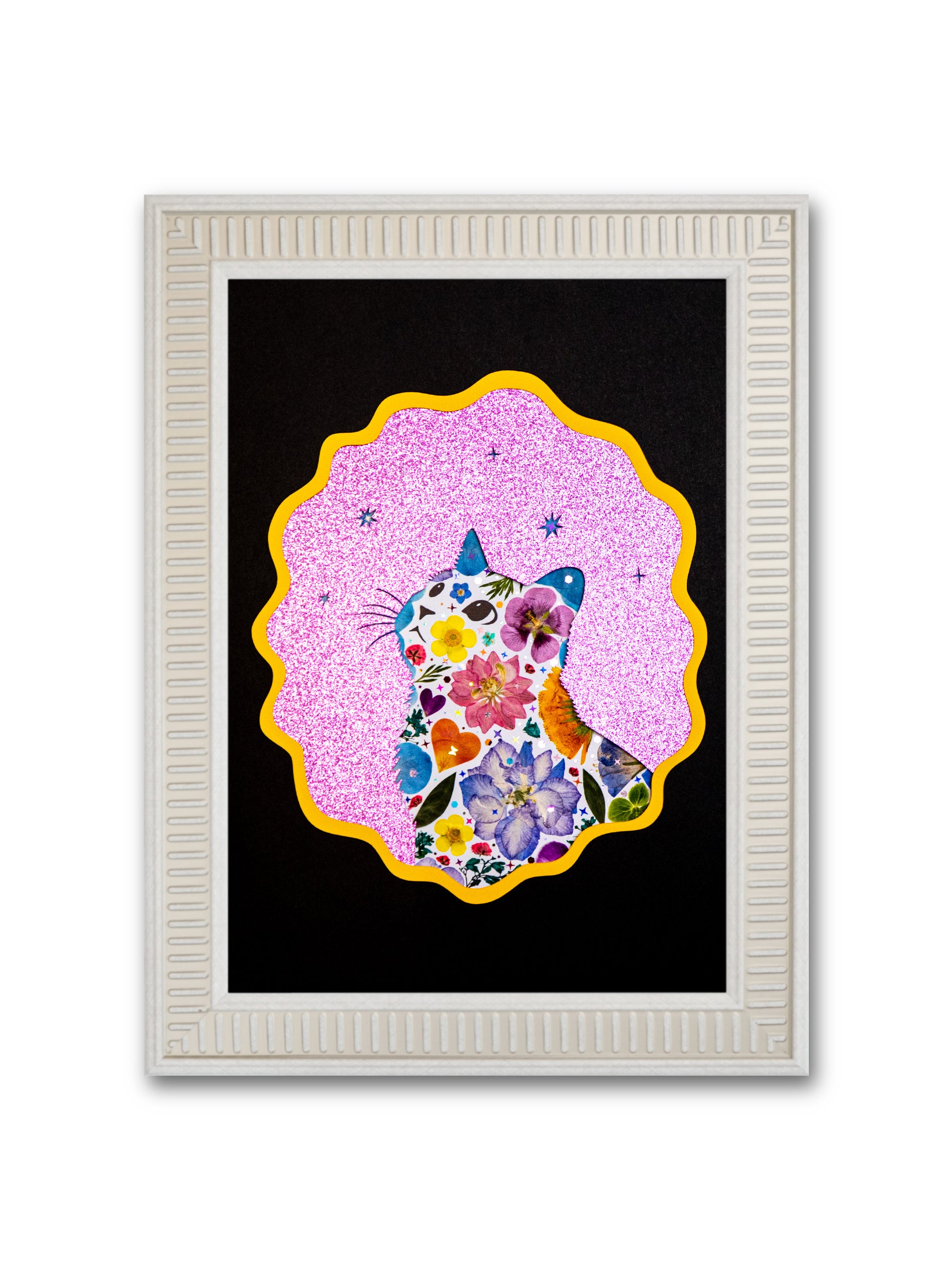 We use premium, hand-pressed flowers curated to retain their vibrant colors for years. As with all natural art, a gentle, graceful fading over time is part of the organic process—think of it as the artwork’s own story. To keep your piece beautiful, simply avoid direct sunlight and high humidity.